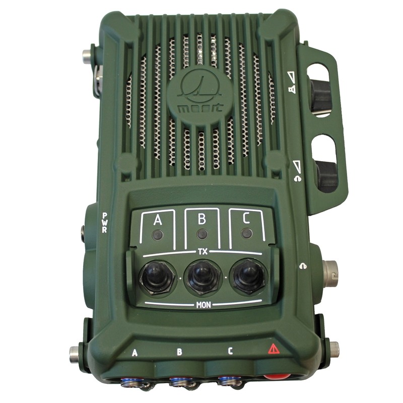 The RM1 radio monitor is designed for installations in military vehicles, shelters and command posts. It allows you to simultaneously monitor the operation of up to 3 radios and transmit on a selected radio if required.